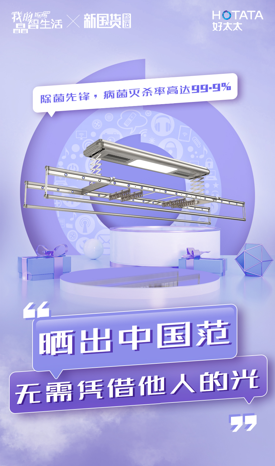 乐鱼1266智能晾衣机,施华洛世奇®元素点缀其中,打造晾衣机的“门面担当”,颜值抗打之余,内涵十足,自带大灯,消毒、风干、APP控制皆不在话下,营造晶智家。