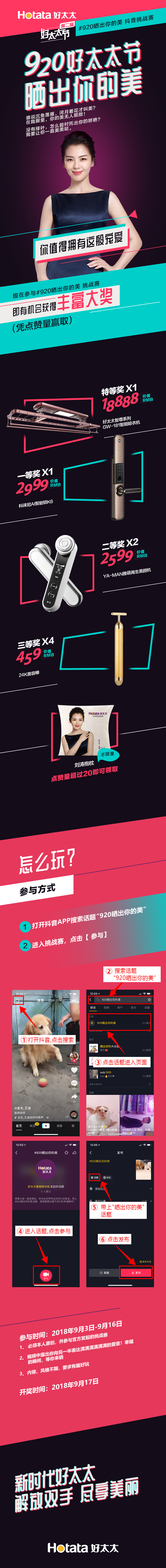 9月3日至9月16日,在抖音带上#920晒出你的美 话题,发布你的爱意视频,即可有机会获得万元大礼!大礼夺取攻略,奉上↓↓↓↓↓↓↓↓