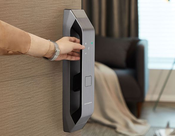 现在的智能门锁按照解锁开门方式,可以分为自动开锁和手动开锁(又称半自动解锁)。手动开锁的是在验证身份(例如检测指纹)成功后,发出提示让用户按下门把手开锁;